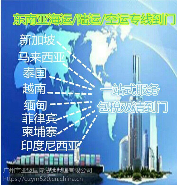 广州亚盟国际货运代理是一家综合性的国际货运代理企业,秉持“***,服务***”的价值文化。为客户提供中国到新加坡海运,中国到新加坡空运,以及东南亚其他国家海运空运出口代理,产品运输,清关等服务,代收货物,整理货物,免费单号网上查询服务,订舱、装柜、报关、商检、清关、派送一条龙服务。根据您的货物的体积、重量以及时效要求,将为您量身定制合适***的空运、海运等运输方案。