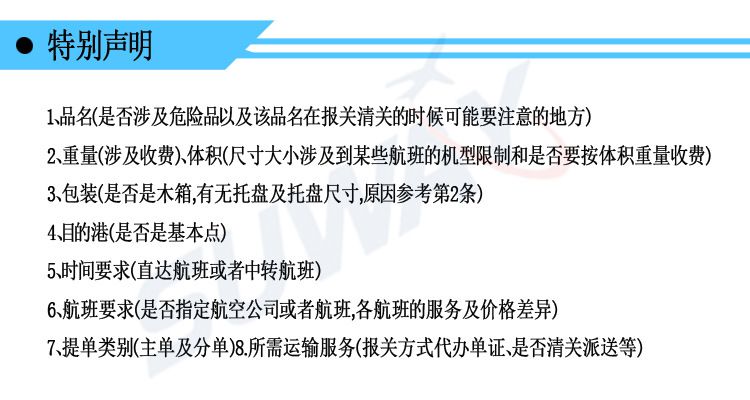 2、重量(涉及收费) 体积(尺寸大小涉及某些航班的机型限制等);