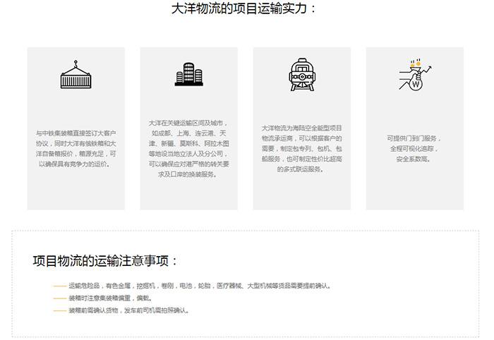 大洋物流是俄铁在中国的总代理,针对俄罗斯主要铁路运输站点有:莫斯科、新西伯利亚、克拉斯诺亚尔斯克、叶卡捷林堡、彼尔姆、车里雅宾斯克、乌兰乌德、罗斯托夫、伊尔库茨克、萨马拉、奥伦堡、喀山、下诺夫哥罗德等上百个站点,可抵达俄罗斯全境所有火车站点。